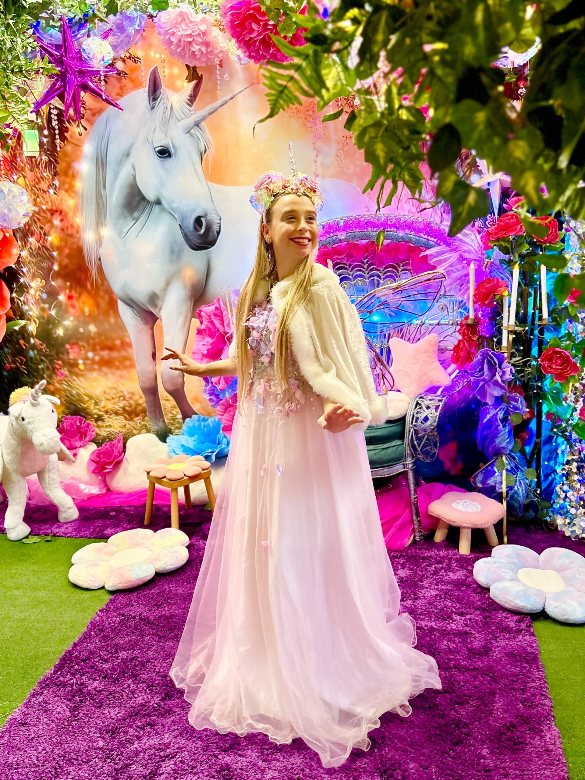 For all little ones that love sparkle, glitter, dazzle and dancing, follow the flowers, cross over rainbows and come on this beautiful adventure with the Unicorn Queen and her Unicorn Faerie friends to find and name a baby unicorn…